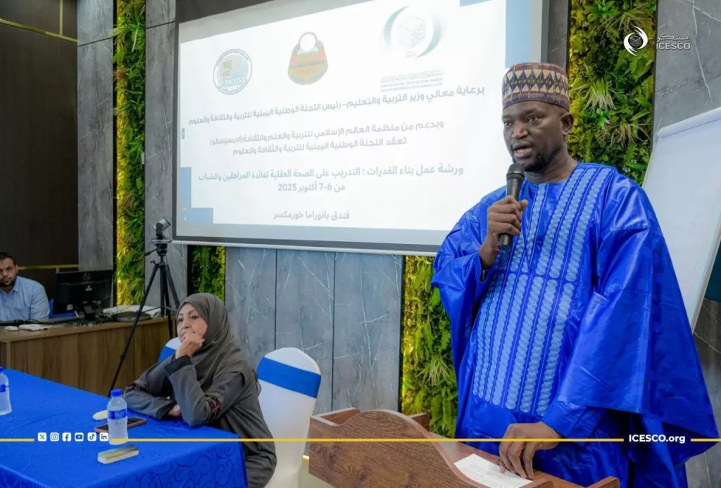 اختتمت منظمة العالم الإسلامي للتربية والعلوم والثقافة (إيسيسكو) ورشة تدريبية بعنوان: بناء القدرات: التدريب على الصحة العقلية لفائدة المراهقين والشباب، التي عقدتها بالتعاون مع اللجنة الوطنية اليمنية للتربية والثقافة والعلوم، في مدينة عدن يومي 6 و7 أكتوبر 2025، لفائدة 35 شابا وشابة، بهدف تعزيز الوعي بالصحة العقلية والنفسية، وتزويد الشباب بالمهارات التي تساعدهم على مواجهة الأزمات.