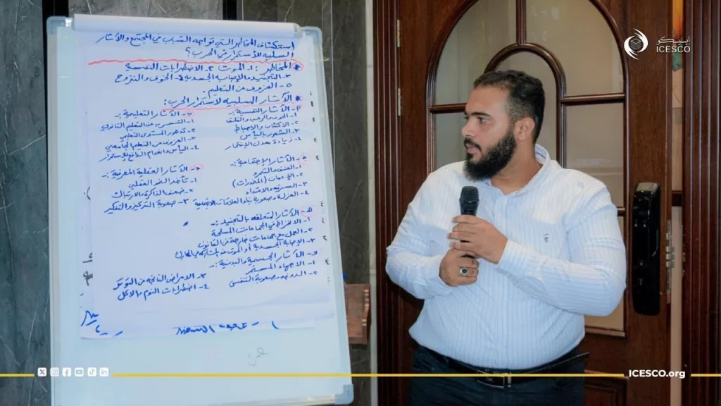 من جانبه، أوضح ممثل الإيسيسكو السيد عليون نداي، رئيس قسم السلام بقطاع العلوم الاجتماعية والإنسانية، أن الصحة النفسية وتمكين الشباب يشكلان محورا رئيسيا في الرؤية الاستراتيجية للمنظمة، مشيرا إلى مبادرات عملية أطلقتها الإيسيسكو تشمل دليلين في الصحة النفسية وتنظيم دورات تدريبية سابقة في المغرب وليبيا.