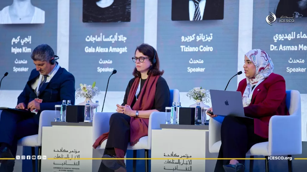 مثل الإيسيسكو في المؤتمر السيد محمد الهادي السهيلي، مدير إدارة الشؤون القانونية والمعايير الدولية، والدكتورة أسماء مهديوي، الخبيرة في الإدارة ذاتها، إذ قدمت ورقة علمية بعنوان: “استراتيجية مكافحة الاتجار غير المشروع بالممتلكات الثقافية في العالم الإسلامي”، عرضت فيها أهم محاور استراتيجية المنظمة في تعزيز قدرات الدول الأعضاء في مجال الحماية القانونية للتراث، والمساعي لإنشاء اللجنة الاستشارية لاسترداد الممتلكات الثقافية في العالم الإسلامي.