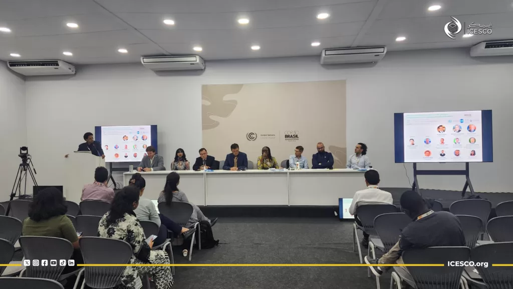 وعُقدت الجلسة التي نظمتها الإيسيسكو يوم الجمعة 14 نوفمبر 2025، بالشراكة مع لجنة العلوم والتكنولوجيا من أجل التنمية المستدامة في الجنوب (COMSATS) والاتحاد من أجل المتوسط (UfM)، تحت عنوان “مسارات الحياد الكربوني عبر التعاون جنوب–جنوب: تقنيات مناخية مرنة، وقدرات معززة، وجذور ثقافية”، وذلك بمشاركة عدد من الخبراء والمختصين الدوليين في المناخ.