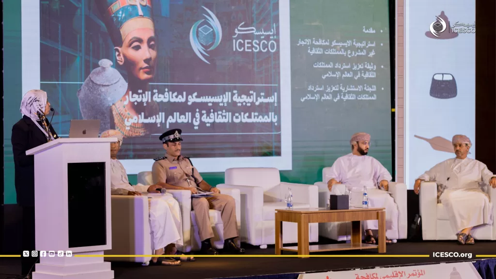 شاركت منظمة العالم الإسلامي للتربية والعلوم والثقافة (إيسيسكو)، في أعمال المؤتمر الإقليمي لمكافحة الاتجار غير المشروع بالممتلكات الثقافية، الذي نظمته وزارة التراث والسياحة بسلطنة عُمان بالتعاون مع اللجنة العُمانية الوطنية للتربية والثقافة والعلوم، خلال الفترة من 17 إلى 19 نوفمبر 2025، في العاصمة العمُانية مسقط.