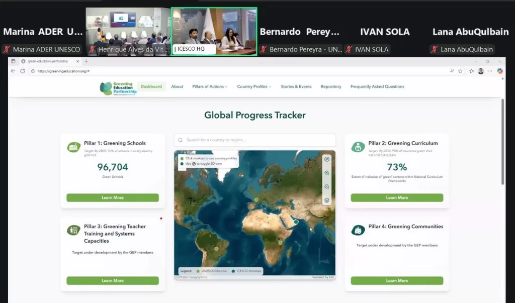 أطلقت منظمة العالم الإسلامي للتربية والعلوم والثقافة (إيسيسكو)، ومنظمة الأمم المتحدة للتربية والعلم والثقافة (يونسكو)، اللوحة العالمية لمتابعة التقدم في التعليم الأخضر، خلال الاجتماع السنوي الثالث لشراكة التعليم الأخضر (GEP)، الذي عقد ضمن أعمال مؤتمر الأطراف COP30 المُقام بمدينة بيليم في البرازيل في الفترة ما بين 10 إلى 21 نوفمبر 2025 .
