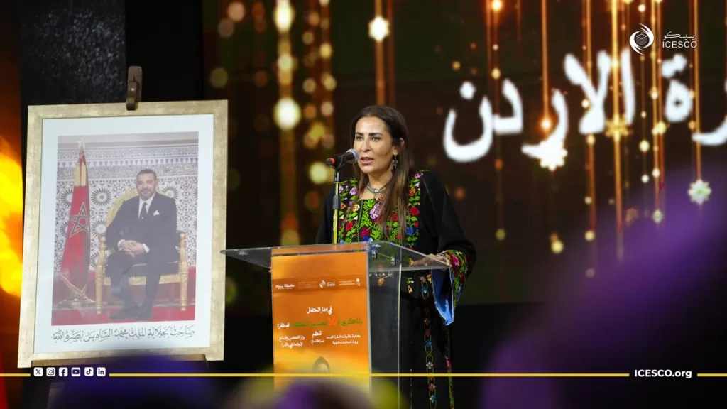 من جهتها، عبرت رانيا الشوبكي، رئيسة جمعية عقيلات السفراء العرب، وحرم سفير دولة فلسطين لدى المغرب، عن شكرها للإيسيسكو على الاستضافة، مشددة أن الأزياء التراثية تشكل جزءا أصيلا من المشهد الثقافي العربي، وتجديدها يمنح التراث حياة جديدة ويجعله فاعلا في المبادرات الإنسانية، وأضافت أن إحياء التراث يمثل إرادة صمود، وخاصة للتراث الفلسطيني المستهدف بالمحو والسرقة، معتبرة هذا الحفل مساحة لإظهاره للعالم، ووجهت التحية للمرأة الفلسطينية الصامدة والحارسة لهذا التراث من التزييف والسلب.