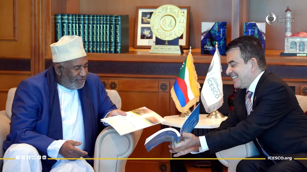 وشهدت الزيارة عقد جلسة مباحثات بحضور السيد يوسف سعيد علي، مستشار الرئيس لشؤون التعليم، والسفير يحيى محمد إلياس، سفير جمهورية القمر المتحدة لدى المملكة المغربية، لمناقشة سبل تعزيز التعاون بين الإيسيسكو وجزر القمر، في مجالات تعليم اللغة العربية للناطقين بغيرها، والبحث العلمي والتعليم الجامعي، وحفظ وتثمين التراث.
