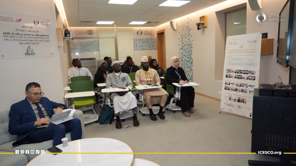عقدت منظمة العالم الإسلامي للتربية والعلوم والثقافة (إيسيسكو)، بالتعاون مع مؤسسة حمدان بن راشد آل مكتوم للعلوم الطبية والتربوية، ورشة عمل إقليمية عن “المناهج والمقرَّرات التعليمية الورقية والإلكترونية في مجال اللغة العربية للناطقين بغيرها”، استفاد منها حضوريا وعبر تقنية الاتصال المرئي 184 متدربا ومتدربة من الأطر التربوية العاملة في مجال تعليم اللغة العربية للناطقين بغيرها، في 15 دولة من إفريقيا وآسيا الوسطى وجنوب شرق آسيا.