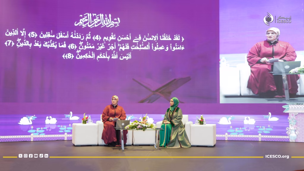 وتوقفت الدكتورة أبوزيد عند مؤهلات الإنسان كما تجلت في قصة آدم عليه السلام، مشيرة إلى أن من ركائز الاستخلاف: كون الإنسان كائنا أخلاقيا، وامتلاكه قابلية التعلم والتطور، إضافة إلى ملكة التفكير والاعتبار التي تمكنه من قراءة الواقع بعين واعية، وربط الفعل بالغاية، وبناء توازن داخلي يحميه من الاضطراب ويعينه على الإصلاح.