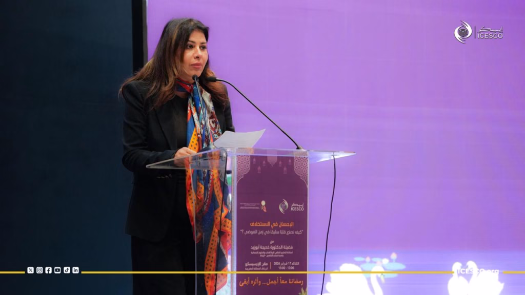 وفي مستهل محاضرتها، أبرزت الدكتورة خديجة أبوزيد أن الاستخلاف ليس مجرد مفهوم نظري، بل هو عهد وميثاق يحمّل الإنسان مسؤولية أخلاقية وحضارية، مؤكدة أن الإنسان “مستخلف مكرم” و”خليفة مكلّف”، وأن الطريق إلى القلب السليم يمر عبر وعي بهذه الأمانة واستحضار مقاصد العمل الصالح في السلوك اليومي.