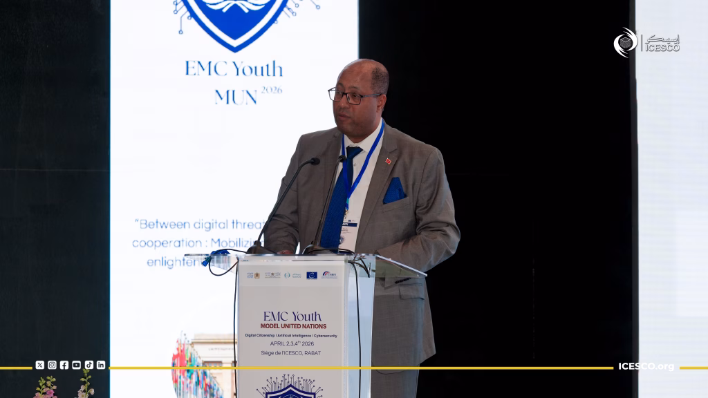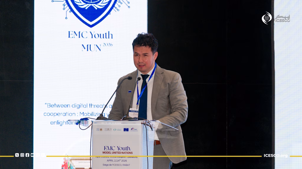 انطلقت يوم الجمعة 3 أبريل 2026، الدورة الأولى لمحاكاة الأمم المتحدة حول المواطنة الرقمية والذكاء الاصطناعي والأمن السيبراني بالمغرب، التي تعقدها منظمة العالم الإسلامي للتربية والعلوم والثقافة (إيسيسكو)، بمقرها في الرباط، بالشراكة مع المركز المغربي للأبحاث المتعددة التقنيات والابتكار، وبرعاية وزارة العدل ووزارة الشباب والثقافة والتواصل المغربية، ومجلس أوروبا بالرباط، وبدعم من سفارة سويسرا بالمغرب، بحضور قرابة 80 شابا وشابة، بهدف مناقشة القضايا المستجدة المرتبطة بالحكامة الأخلاقية للفضاء الرقمي وحماية حقوق الإنسان على الإنترنت.