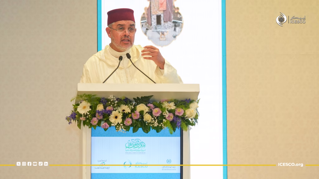 واستهلت الاحتفالية، يوم الأحد 26 أبريل 2026، بتلاوة آيات بينات من الذكر الحكيم، أعقبها تقديم عام للسفير خالد فتح الرحمن، مدير مركز الحوار الحضاري بالإيسيسكو، أبرز فيها دور المعرض في إذكاء الوعي الحضاري والعلمي بين زائريه.