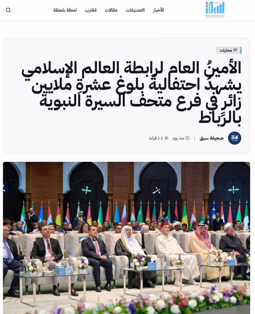 ولم يقتصر الاهتمام الإعلامي السعودي على هذه المنابر، إذ خصصت صحيفة سبق الإلكترونية كذلك مقالا بعنوان: “الأمين العام لرابطة العالم الإسلامي يشهدُ احتفاليةَ بلوغ عشرةِ ملايين زائرٍ في فرع متحف السيرة النبوية بالرباط”.