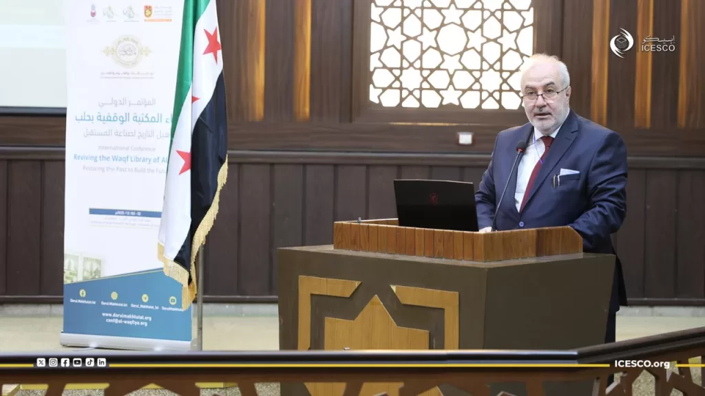 On Tuesday, 2 December 2025, the International Conference “Reviving the Waqf Library in Aleppo: Restoring History to Build the Future” was launched, held under the auspices of the Islamic World Educational, Scientific and Cultural Organization (ICESCO) at the Arab Scientific Heritage Institute at the University of Aleppo in Syria. The opening was attended by Dr. Mohammad Abu Al-Khair Shukri, Syrian Minister of Endowments, and Mr. Mohammed Yassin Saleh, Minister of Culture, alongside a select group of experts in heritage preservation, calligraphy, and manuscripts.