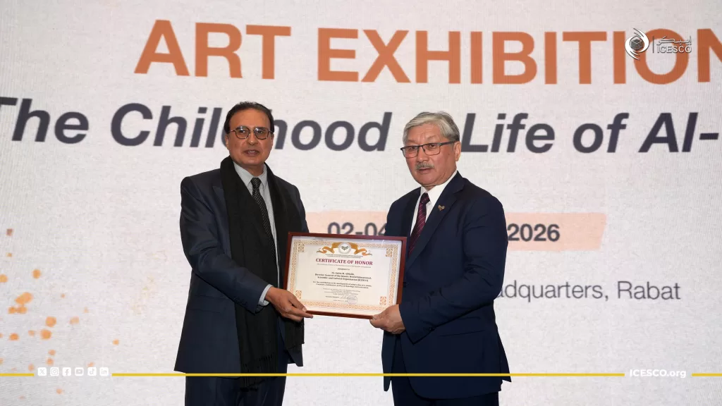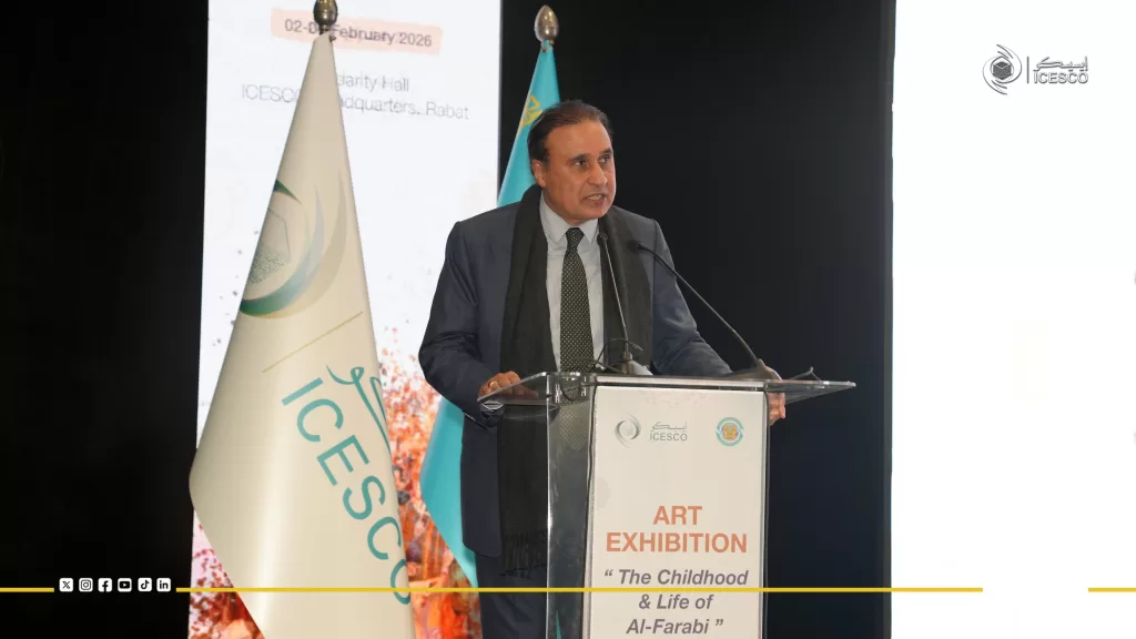 The headquarters of the Islamic World Educational, Scientific and Cultural Organization (ICESCO) in Rabat witnessed, on Monday, February 2, 2026, the inauguration of the art exhibition, “The Childhood & Life of Al-Farabi”, by renowned Kazakh artist and painter Zhanuzak Musapir. The exhibition was organized by ICESCO in partnership with the Embassy of the Republic of Kazakhstan in the Kingdom of Morocco, with the aim of highlighting the legacy of the great Muslim philosopher and scholar Abi Nassr Al-Farabi through an artistic vision that casts light on his childhood, scholarly journey, and contributions to Islamic civilization.