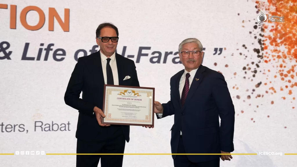 At the close of the ceremony, the National Academy of Arts of Kazakhstan presented certificates of appreciation to Dr. Salim M. AlMalik and a host of ICESCO leadership figures in recognition of their roles in celebrating intellectual figures and preserving human heritage for new generations.
