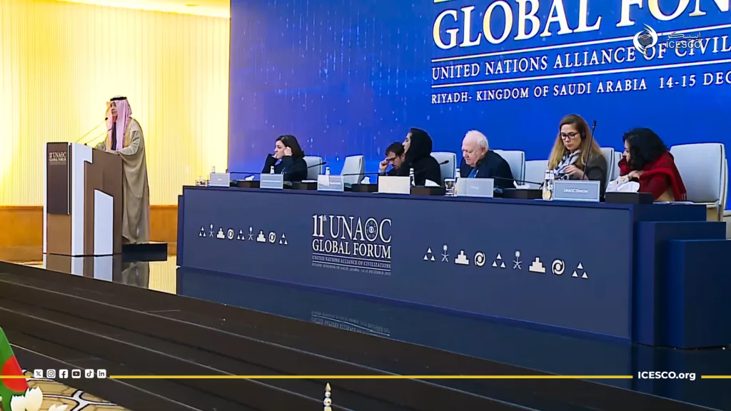 Ces propos émanent de l’allocution qu’il a prononcée lors du 11e Forum des Alliances des civilisations des Nations Unies, qui s’est tenu les 14 et 15 décembre 2025 à Riyad, capitale du Royaume d’Arabie saoudite, sous la présidence de Son Altesse le Prince Faisal bin Farhan, ministre saoudien des Affaires étrangères, et en présence de M. António Guterres, Secrétaire général des Nations Unies, de M. Miguel Ángel Moratinos, Haut Représentant du Forum des Nations Unies pour l’Alliance des civilisations, ainsi que nombre de ministres des Affaires étrangères, de leaders politiques et religieux, de chefs d’organisations internationales et de représentants de la société civile.